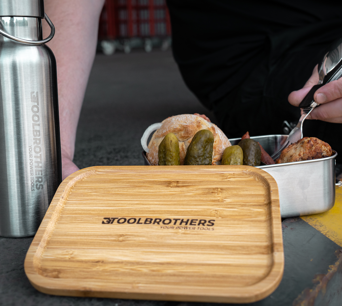 - 1x pojemnik na lunch Toolbrothers Fan ze stali nierdzewnej z bambusową pokrywką 1200 ml