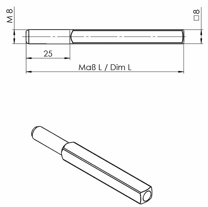 Wymienny trzpień OGRO 115 kwadrat 8 x 90 mm ( 3000267162 )