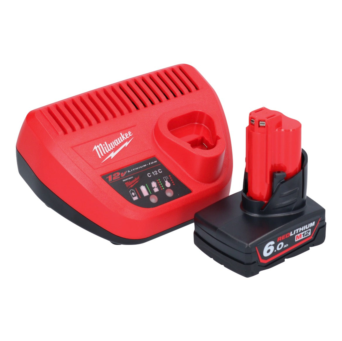 - 1x akumulator wsuwany Milwaukee M12 B6 12 V 6,0 Ah Li-Ion