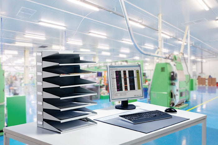 do formatu DIN A4 - malowana proszkowo blacha stalowa - ze stałymi przegródkami i bocznymi okienkami na etykiety - nadaje się do montażu na ścianie - dostawa obejmuje materiał montażowy