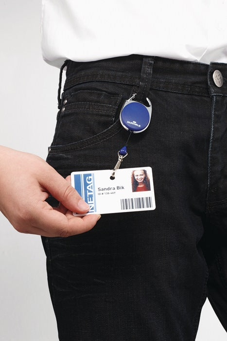 Wytrzymały uchwyt na identyfikator (9000483343) z haczykiem sprężynowym niebieski
