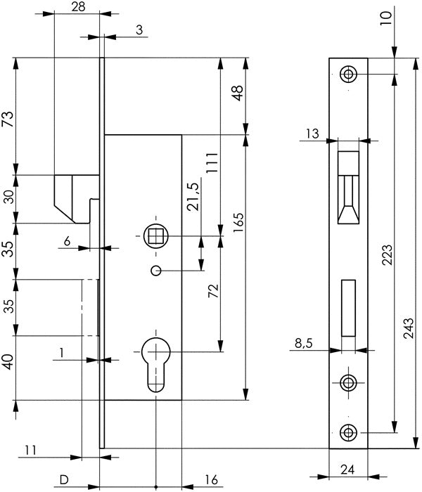 Zamek AMF do drzwi przesuwnych z ościeżnicą rurową 8331 ( 3311021043 ) PZW rozstaw 35 mm