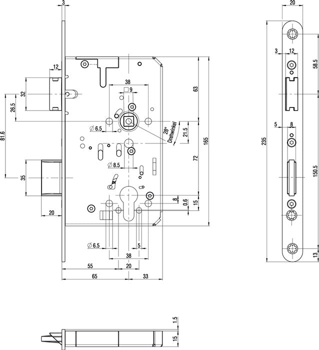 Zamek wpuszczany BKS 2320 Funkcja antypaniczna B zaokrąglony ( 3324024355 )