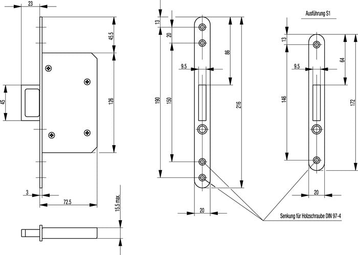 Zamek wpuszczany do drzwi przesuwnych BKS 0393 stalowy srebrny ( 3000250780 )