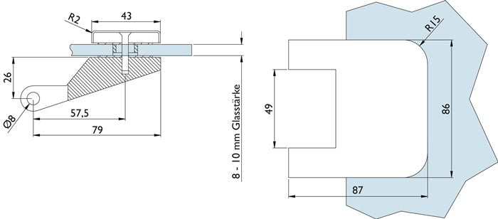 Zawias do drzwi szklanych 6325-20 ( 3000253950 ) jasny metal, stal nierdzewna, kolorowy, 3-częściowy