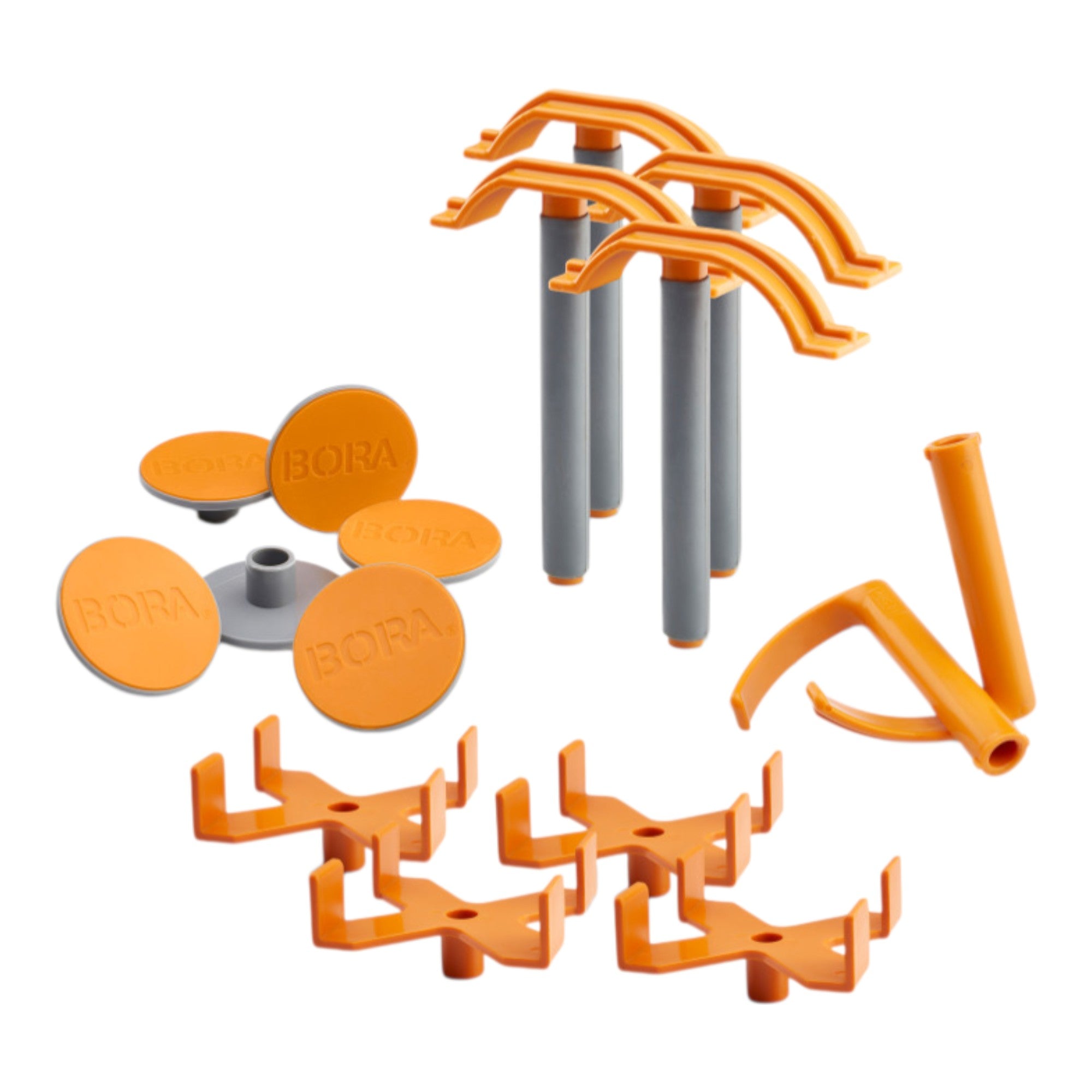 Zestaw akcesoriów do cięcia paneli BORA Centipede: 4 uchwyty X-Cup, 4 szybkozłączki, 6 podkładek antypoślizgowych, 2 haki (CAK2017)