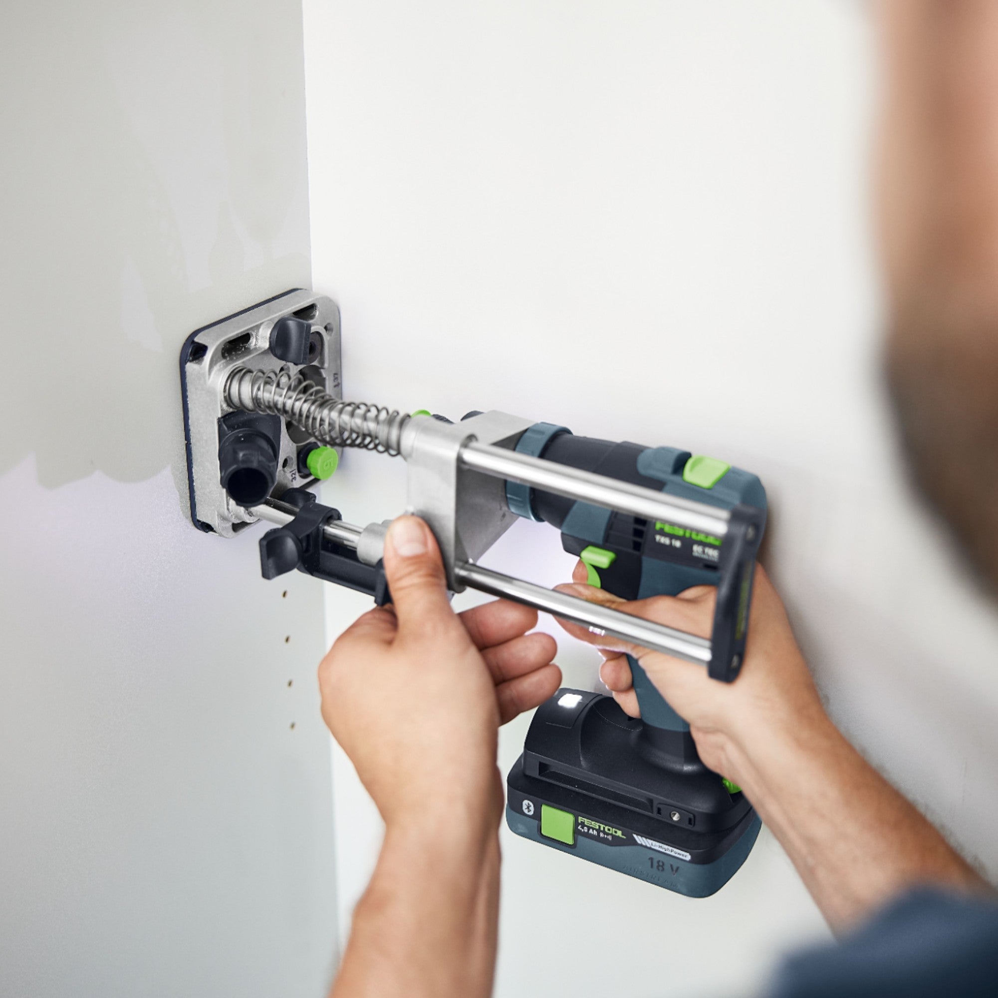Mobilna przystawka wiertarska MB 40 jest idealnym towarzyszem dla każdego, kto potrzebuje precyzyjnych otworów do swojej pracy. Jako kompaktowe narzędzie wiertarskie, umożliwia wiercenie pod kątem prostym, precyzyjnych i powtarzalnych otworów - niezależnie od tego, czy pracujesz w drewnie, metalu czy plastiku. Precyzyjne ustawienie głębokości i wszechstronne ograniczniki ułatwiają wiercenie otworów pionowych, czołowych i rzędowych. Zintegrowany system odsysania, który można podłączyć bezpośrednio do płyty bazowej, zapewnia optymalną widoczność miejsca wiercenia. Dzięki dokładnemu ustawieniu głębokości (z ustawieniem zerowym i możliwością odczytu głębokości wiercenia do 50 mm), MB 40 oferuje precyzyjną kontrolę głębokości wiercenia. Wyświetlacz w mm i calach zapewnia maksymalną dokładność. Przykładnica wzdłużna i przykładnica do wiercenia czołowego (PA-MB 40) umożliwiają precyzyjne i powtarzalne wiercenie w krawędziach płyt, a adapter szyny prowadzącej FSA-MB 40 umożliwia wiercenie w długich i szerokich elementach. Unikalna funkcja linii otworów umożliwia również precyzyjne wiercenie w systemie 32-otworowym. Uchwyt narzędziowy MB 40 można zamontować szybko i bez użycia narzędzi. Uchwyt CENTROTEC umożliwia szybką wymianę narzędzi do wiercenia. Zintegrowany system odsysania wiórów zapewnia bezpyłowe miejsce pracy i jest kompatybilny z odkurzaczami klasy M i wężami o średnicy D 27. Oznaczenia na płycie podstawy umożliwiają łatwe pozycjonowanie i precyzyjne ustawienie na obrabianym przedmiocie. Dzięki gumowanej podstawie osprzęt wiertarski pozostaje stabilny i nie ślizga się nawet w wymagających zastosowaniach. Mobilna przystawka wiertarska MB 40 jest idealna do szerokiego zakresu zastosowań, w tym wiercenia otworów pod kątem 90°, tworzenia krótkich grup otworów w systemie 32, wiercenia okuć, takich jak zawiasy garnków, wsporniki półek i oczywiście do prac montażowych w kuchni i przy budowie mebli. Jest wyjątkowo praktyczna i kompaktowo zapakowana w Systainer³, co ułatwia jej przechowywanie i transport. Dzięki MB 40 projekty wiertarskie będą wykonywane szybciej i precyzyjniej niż kiedykolwiek wcześniej.