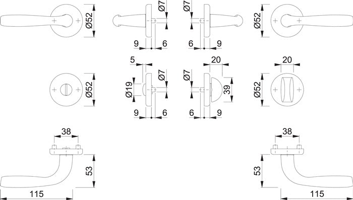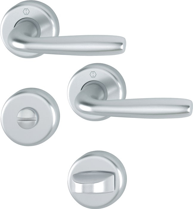 Zestaw rozet do drzwi wewnętrznych - Klamki stałe/obrotowe, sprężyny powrotne, bezobsługowe łożyska ślizgowe - Pełny trzpień HOPPE - Konstrukcja nośna: tworzywo sztuczne, krzywki nośne Mocowanie: ukryte, ciągłe, naprzemienne, śruby uniwersalne HOPPE do szybkiego montażu - Kierunek zatrzymania DIN lewy/prawy - Do drzwi o grubości 37-42 mm