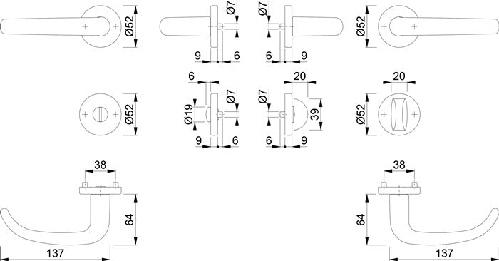 Rozeta do drzwi wewnętrznych zgodna z normą DIN EN 1906 (klasa użytkowania 3) - Klamki z szybkozłączem (z trzpieniem pełnym 8 mm) do drzwi o grubości 37 - 42 mm - Rozeta z plastikową konstrukcją nośną, sprężyną powrotną i krzywkami podpierającymi - Mocowanie ukryte, ciągłe - Alternatywne strony wraz z uniwersalnymi śrubami - Kierunek zatrzymania DIN lewy / prawy