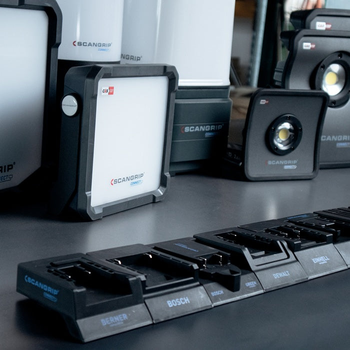 do stosowania akumulatorów 18 V w lampach roboczych SCANGRIP CONNECT