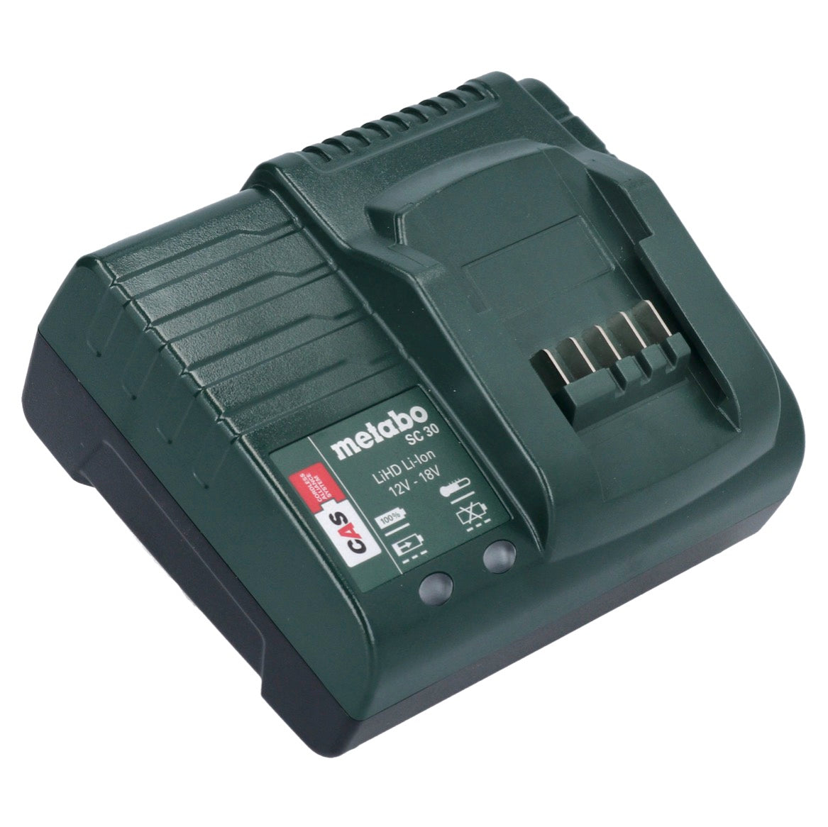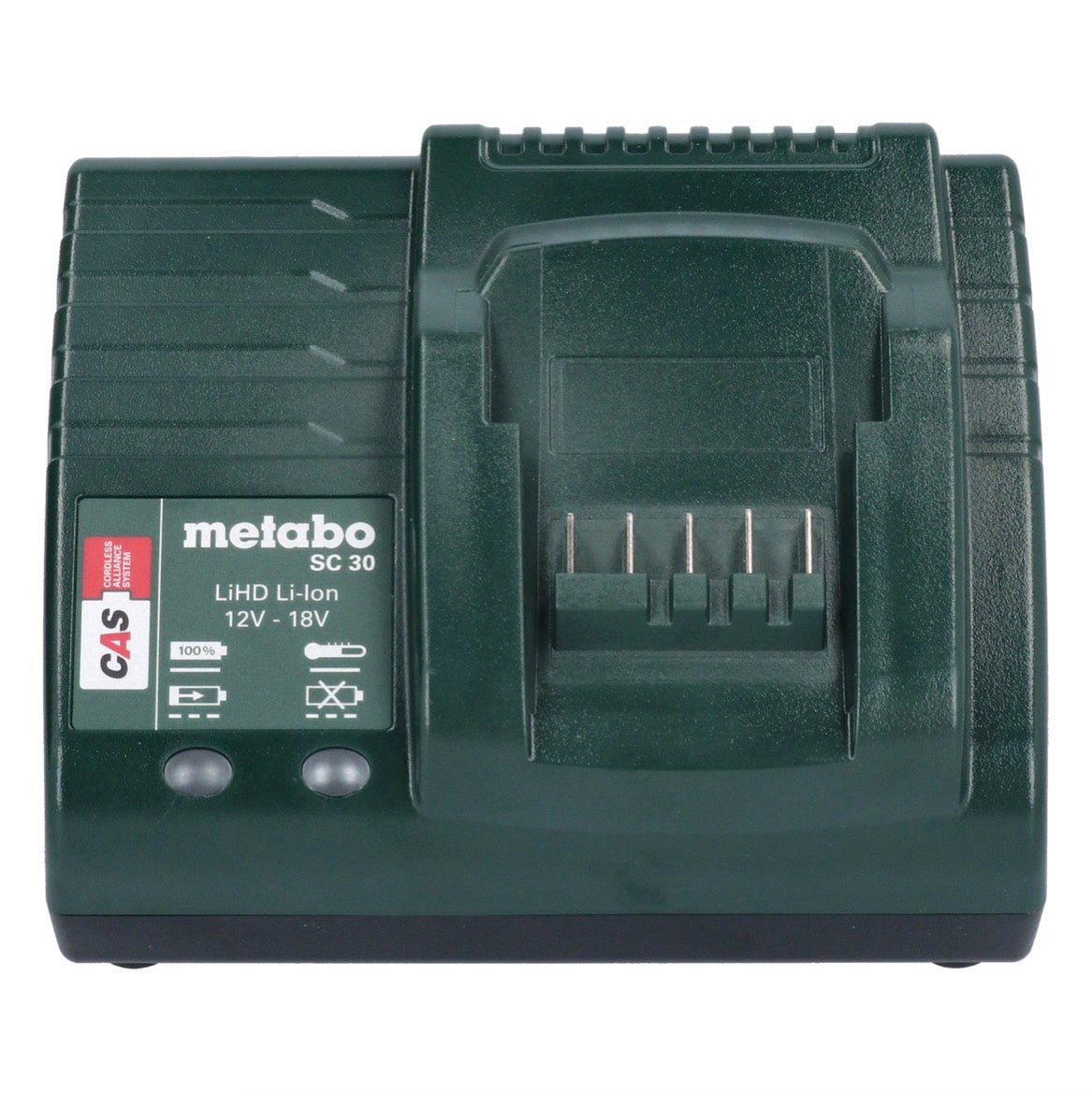 Dzięki ładowarce SC 30 Metabo oferuje ładowarkę odpowiednią do ładowania wszystkich akumulatorów litowo-jonowych i LiHD o napięciu 12 V i 18 V. Dzięki maksymalnemu prądowi ładowania wynoszącemu 2,6 A akumulatory są szybko ładowane i gotowe do ponownego użycia. Szczególną zaletą tej ładowarki jest możliwość ładowania wszystkich akumulatorów partnerów CAS (Cordless Alliance System), takich jak: Rothenberger, Edding, Fischer, Mafell, Collomix, Eibenstock, Eisenblättert, Haaga, Starmix, Steine, Rokamat, Birchmeier. Jedna ładowarka do wszystkiego.
