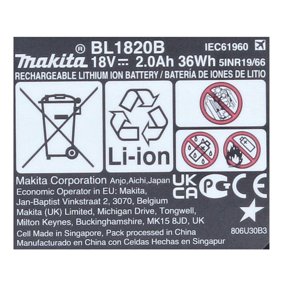 - 1x Akumulator Makita BL 1820 B 18 V 2,0 Ah ( 197254-9 )