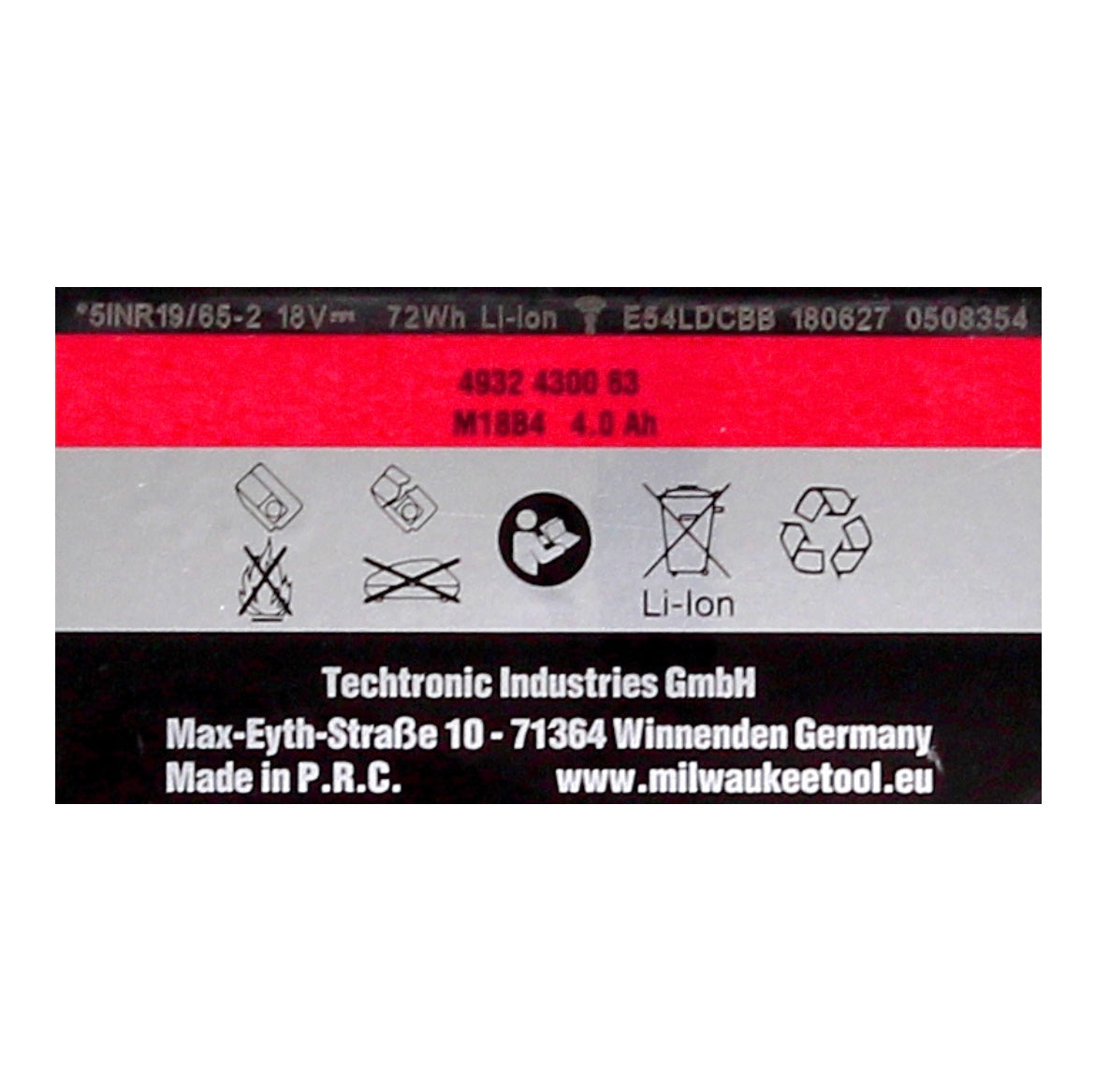 - 1x Akumulator Milwaukee M18 B4 18 V / 4,0 Ah / 4000 mAh RED Li-Ion ( 4932430063 )