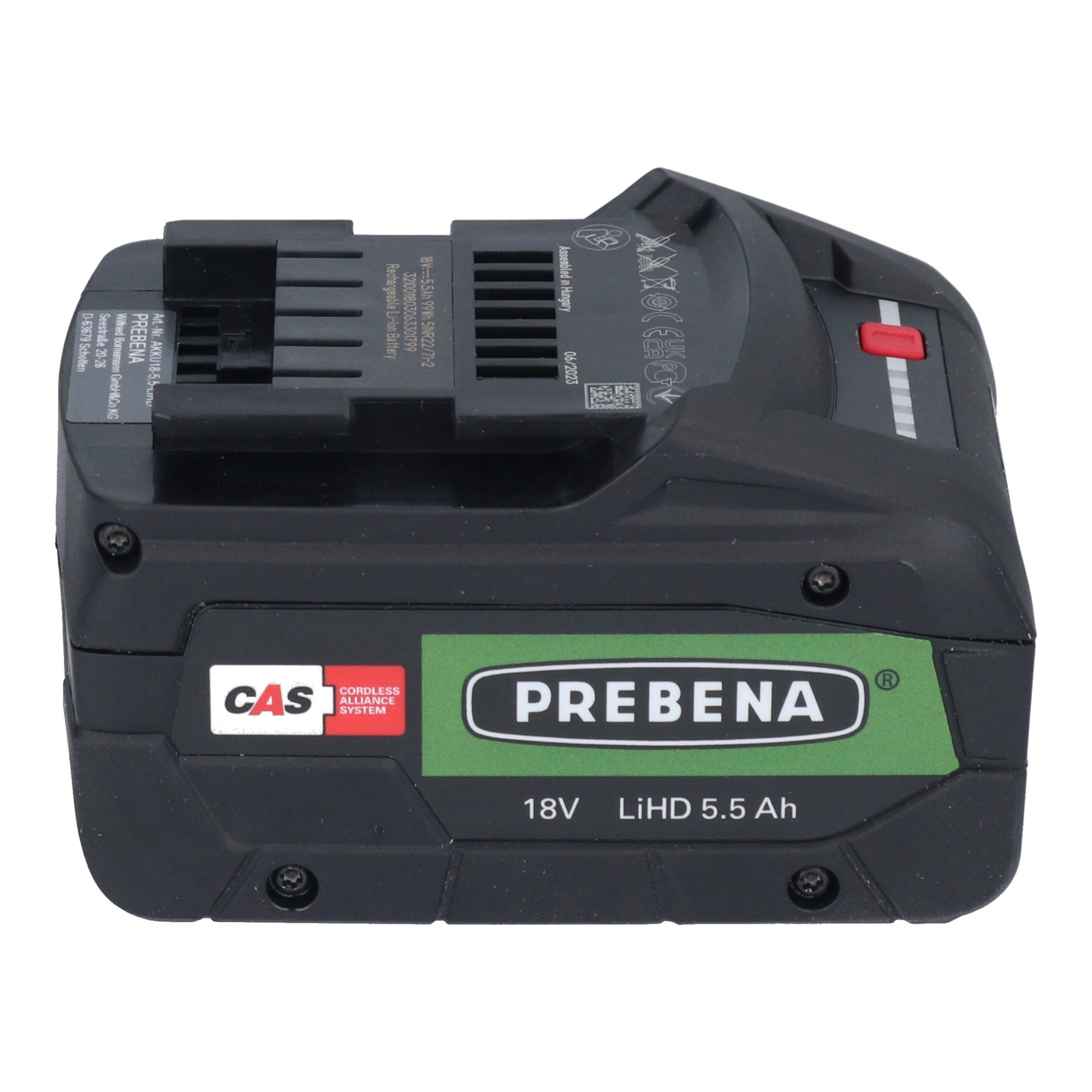 Akumulator Prebena AKKU18-5,5-LIHD 18 V zapewnia najwyższą wydajność i wyjątkowo długi czas pracy przy minimalnym wzroście temperatury. Dzięki akumulatorowi LiHD i inteligentnemu zarządzaniu akumulatorem można polegać na trwałych bateriach. Opatentowana technologia ładowania "AIR COOLED" zapewnia wydajne i delikatne ładowanie. Stałe elektroniczne monitorowanie pojedynczego ogniwa (ESCP) podczas ładowania zapewnia wyjątkowo długą żywotność baterii. Kontrolowane przez procesor zarządzanie ładowaniem i rozładowywaniem oraz wyświetlacz pojemności umożliwiają proste i skuteczne monitorowanie stanu naładowania. Dzięki 100% kompatybilności ze wszystkimi urządzeniami 18 V i ładowarkami CAS Partner, akumulator ten nadaje się do wszystkich zastosowań.Dane techniczne: