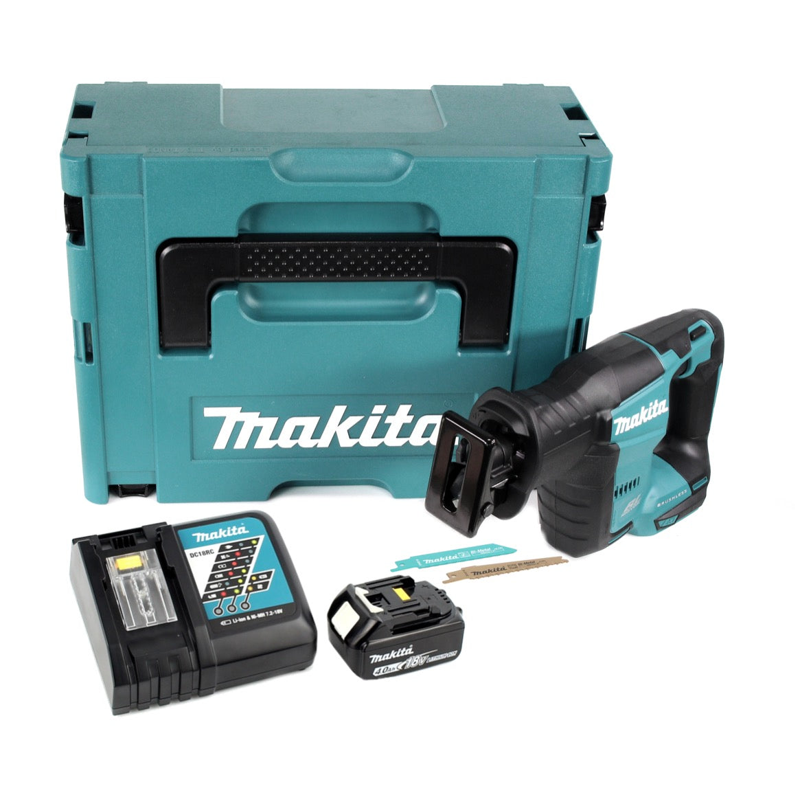 Akumulatorowa pilarka szablasta Makita DJR 188 RM1J 18 V bezszczotkowa pilarka szablasta w zestawie Makpac + 1x akumulator 4,0 Ah + ładowarka