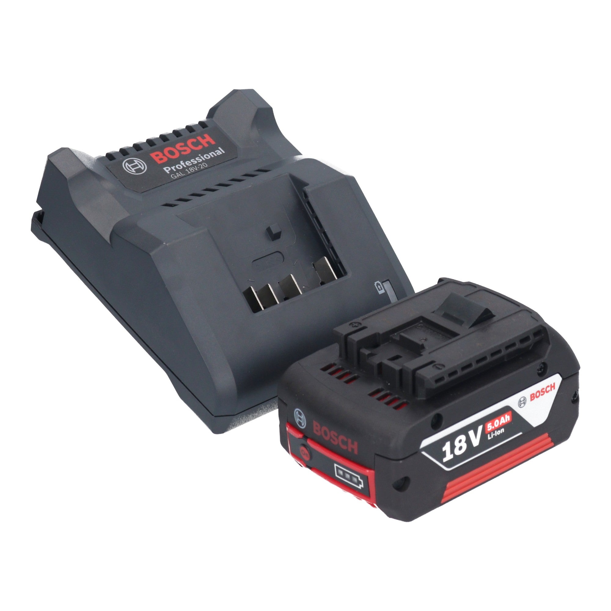 - 1x akumulator litowo-jonowy Bosch GBA 18 V / 5,0 Ah / 5000 mAh