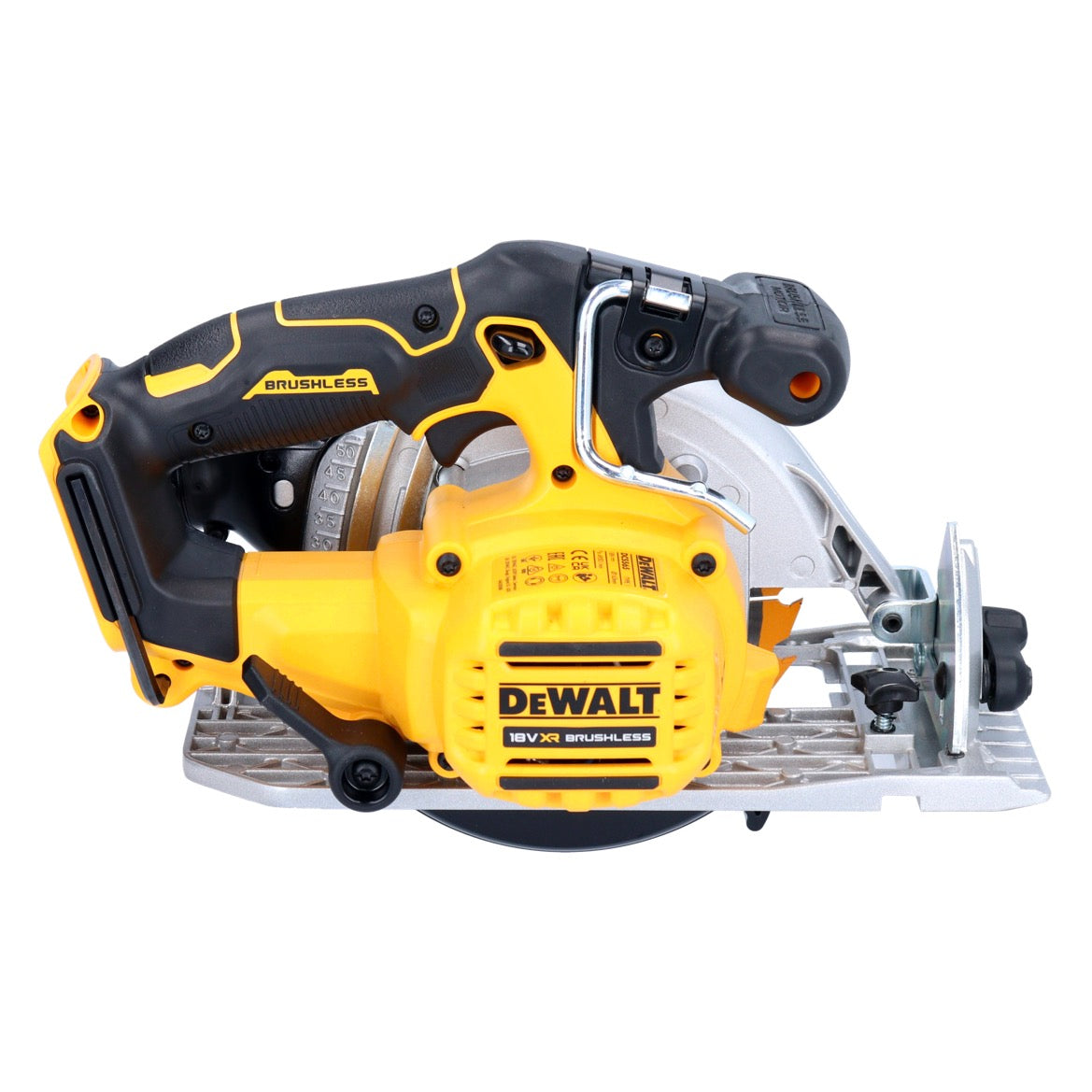 Akumulatorowa pilarka tarczowa DeWalt DCS 565 to mocna pilarka o bardzo dużej głębokości cięcia, idealna do użytku z szyną prowadzącą. Dzięki innowacyjnej technologii silnika bezszczotkowego oferuje wyższą wydajność, bardziej kompaktowe wymiary, dłuższy czas pracy na jednym ładowaniu akumulatora i dłuższą żywotność. Dzięki elektronice bezpieczeństwa przenośna pilarka tarczowa umożliwia bezproblemowe długotrwałe użytkowanie, ponieważ stale monitoruje temperaturę akumulatora, pobór prądu i ochronę przed rozładowaniem. Ponadto elektroniczny hamulec silnika i wyłącznik blokujący zapewniają bezpieczne użytkowanie. Przenośna pilarka tarczowa jest wszechstronna, ponieważ głębokość cięcia i kąt nachylenia można regulować precyzyjnie, szybko i bez użycia narzędzi. Precyzyjne skalowanie i stałe zaczepy pod kątem 22,5° i 45° sprawiają, że jest to szczególnie łatwe. Precyzyjne cięcia wzdłużne są możliwe dzięki precyzyjnie regulowanej przykładnicy wzdłużnej. Brzeszczot można szybko i łatwo wymienić dzięki blokadzie wrzeciona i zintegrowanemu kluczowi montażowemu. Wytrzymała, odporna na skręcanie aluminiowa stopa piły zapewnia długą żywotność. Pomimo swojej wydajności, przenośna pilarka tarczowa jest łatwa w obsłudze i prowadzeniu dzięki swoim kompaktowym wymiarom. Nawet w słabych warunkach oświetleniowych, skrócona osłona ochronna w przedniej części, zintegrowana dioda LED i urządzenie nadmuchowe umożliwiają nieograniczoną widoczność cięcia. Ręczna pilarka tarczowa jest wytrzymała, a jednocześnie lekka, ponieważ obudowa przekładni i osłona ochronna są wykonane z wysokiej jakości aluminium. Kompaktowa i dobrze wyważona konstrukcja, a także gumowane, ergonomiczne uchwyty i dodatkowe rękojeści zapewniają bezpieczeństwo i komfort pracy. Przenośna pilarka tarczowa jest wyposażona w system odsysania pyłu kompatybilny z systemem Airlock, zapewniający skuteczne odsysanie pyłu. Tarcza pilarska umieszczona po lewej stronie umożliwia idealne prowadzenie maszyny w określonych zastosowaniach. Ręczna pilarka tarczowa może być używana ze wszystkimi akumulatorami 18 V XR lub 54 V XR FLEXVOLT.