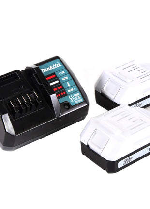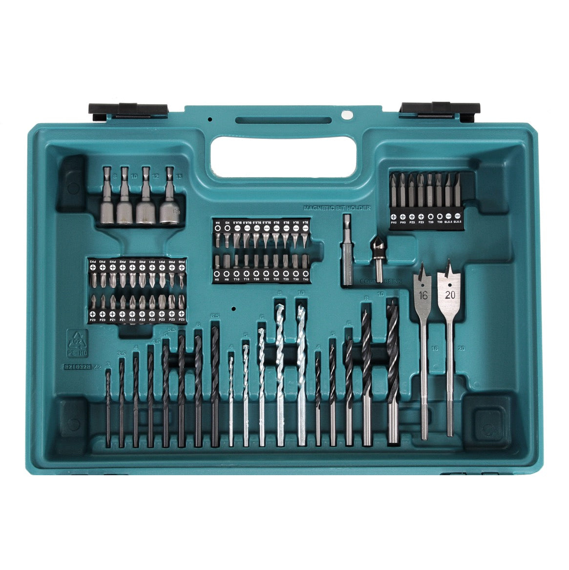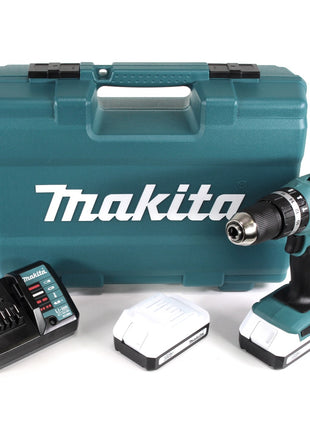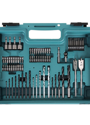 Akumulatorowa wiertarko-wkrętarka udarowa Makita HP 457 DWE 18 V + akumulator 2 x 1,3 Ah + ładowarka + 74-elementowy zestaw akcesoriów w walizce narzędziowej