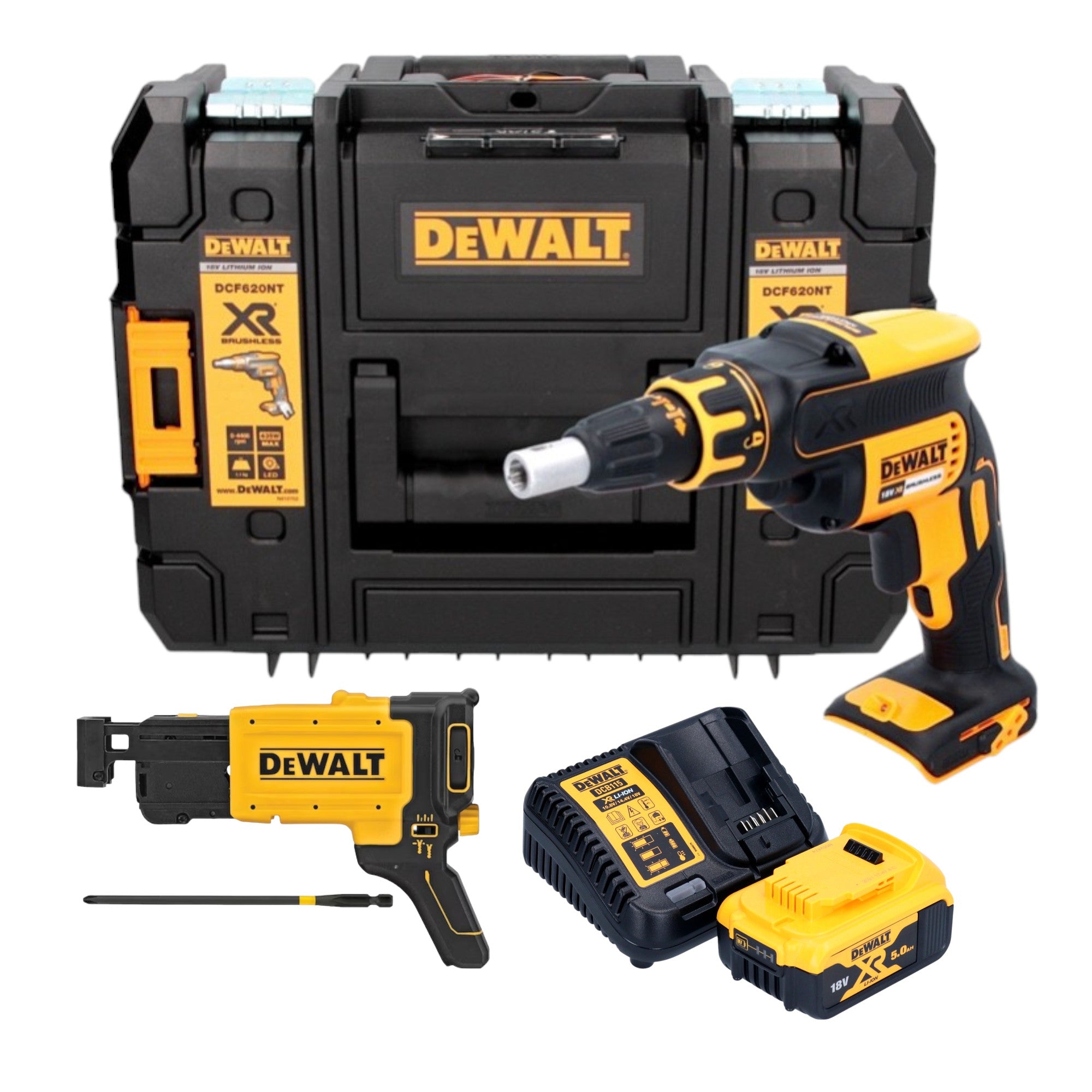 Akumulatorowa wkrętarka do suchej zabudowy DeWalt DCF 620 P1T 18 V 30 Nm bezszczotkowa + 1x akumulator 5,0 Ah + ładowarka + TSTAK