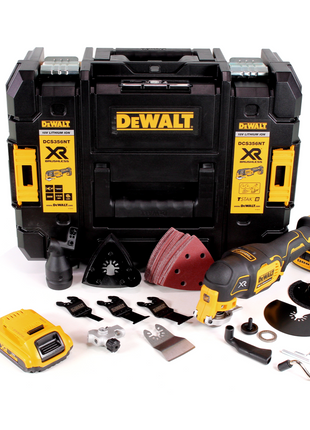 Akumulatorowe narzędzie wielofunkcyjne DeWalt DCS 356 NT 18 V bezszczotkowe + 35 akcesoriów + 1x akumulator 2,0 Ah + TSTAK - bez ładowarki