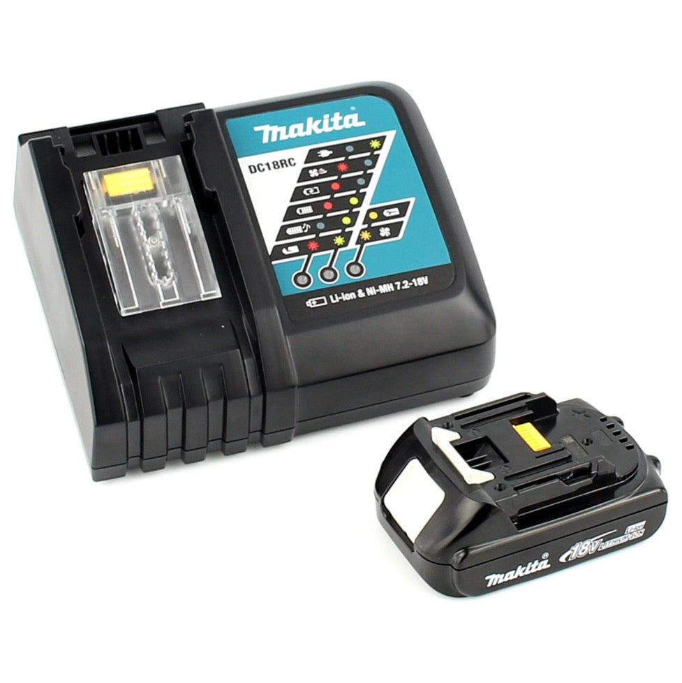 Akumulatorowe nożyce do blachy Makita DJS 161 RY1J 18 V Li-Ion w zestawie Makpac + 1 x akumulator 1,5 Ah + ładowarka