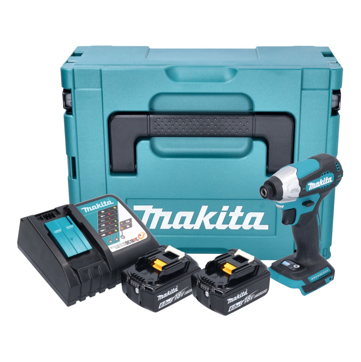 Akumulatorowy klucz udarowy Makita DTD 157 RGJ 18 V 140 Nm 1/4" bezszczotkowy + 2x akumulator 6,0 Ah + ładowarka + walizka Makpac
