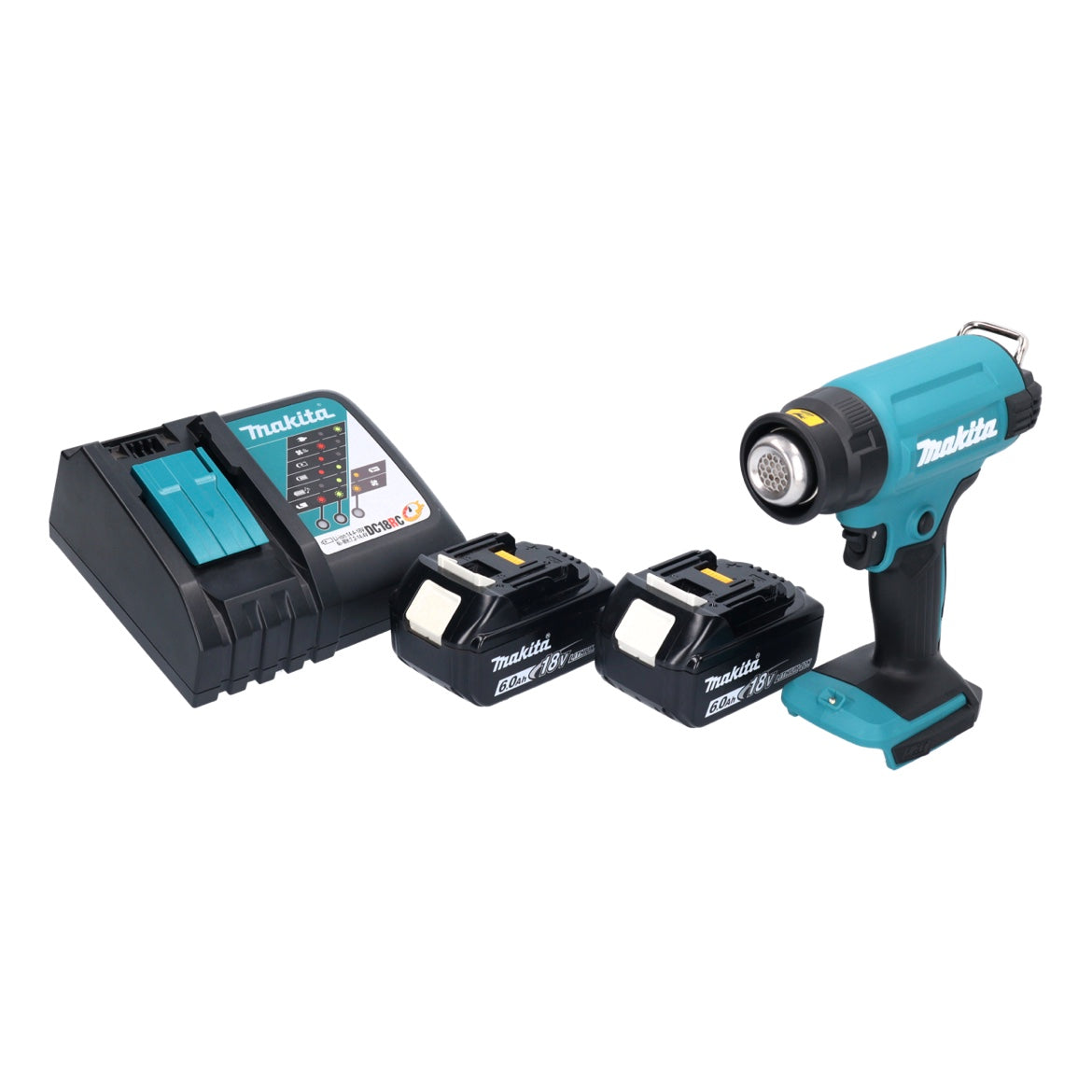 Akumulatorowy pistolet na gorące powietrze Makita DHG 180 RG 18 V 550 °C + 2x akumulator 6,0 Ah + ładowarka