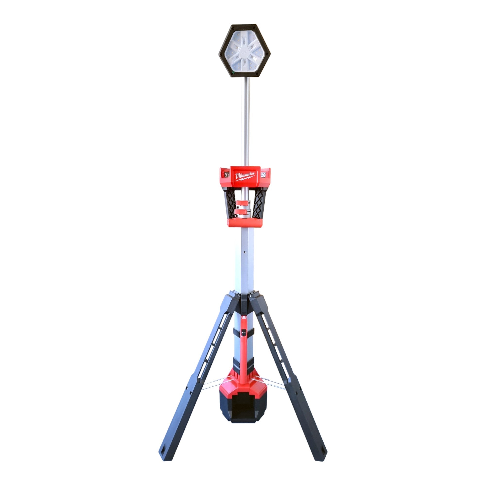 Akumulatorowy reflektor budowlany M18™ LED z technologią oświetleniową TRUEVIEW™ jest idealnym towarzyszem dla wszystkich profesjonalnych rzemieślników. Reflektor budowlany jest wyposażony w ramę ochronną, która chroni głowicę reflektora i soczewkę podczas transportu. Oświetlenie o mocy 2000 lumenów jest tak jasne, jak 250-watowa lampa halogenowa. Dzięki odpornej na wstrząsy konstrukcji ze stali nierdzewnej głowicę reflektora można obracać we wszystkich kierunkach. Dzięki wysuwanemu statywowi od 1,10 m do 2,20 m, reflektor budowlany LED można ustawić na wygodnej wysokości roboczej. Kompaktowy akumulator 5,0 Ah zapewnia czas pracy do 10 godzin przy niskim poziomie mocy, 6 godzin przy średnim poziomie mocy i do 4 godzin przy wysokim poziomie mocy. Składana konstrukcja i równomierne rozłożenie ciężaru sprawiają, że urządzenie jest bardziej stabilne i łatwiejsze w transporcie. Dzięki nisko położonemu środkowi ciężkości reflektor jest stabilny nawet w złych warunkach. Dzięki klasie ochrony IP54, reflektor budowlany LED jest również chroniony przed kurzem i wodą rozpryskową do użytku komercyjnego, należy przestrzegać przepisów budowlanych!