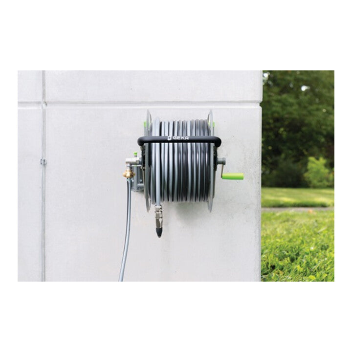 może być używany zarówno stacjonarnie, jak i mobilnie - zamontuj GEKA P40 na ścianie i po prostu zdejmij w razie potrzeby, aby przenieść go w żądane miejsce - obrotowy - może być montowany po lewej lub prawej stronie - 4-stopniowa blokada - solidna, malowana proszkowo konstrukcja stalowa - kątowe złącze obrotowe wykonane z mosiądzu - nadaje się do wody pitnej - ochrona przed załamaniem węża dzięki rurze wlotowej 3/4 " (wykonanej ze stali nierdzewnej, odpowiedniej do wody pitnej) - bęben chroniący wąż - optymalny przepływ wody - zakres temperatur: +4 °C do +60 °C
