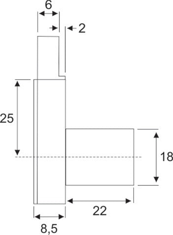 rozstaw 25 mm, obudowa wystająca 22 mm - Zamak niklowany - bębenek Ø 18 mm - montowany na bębenku - z rozetą bębenka i 2 kluczami