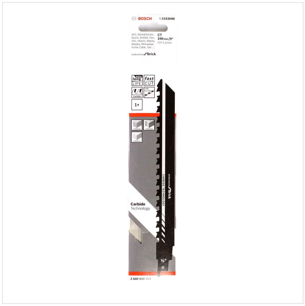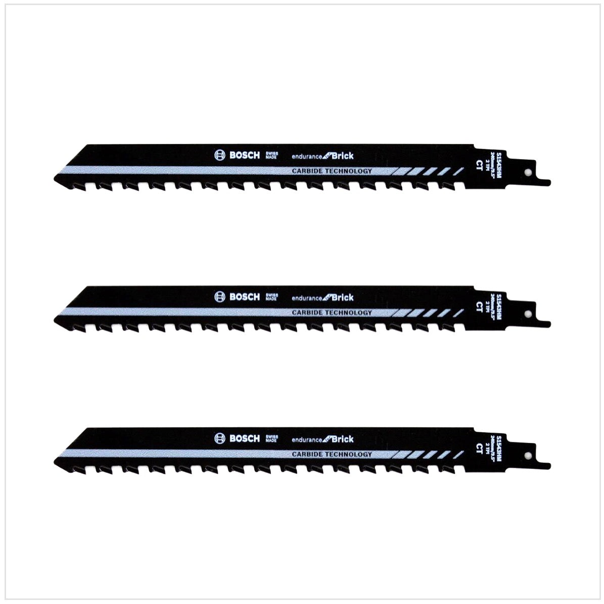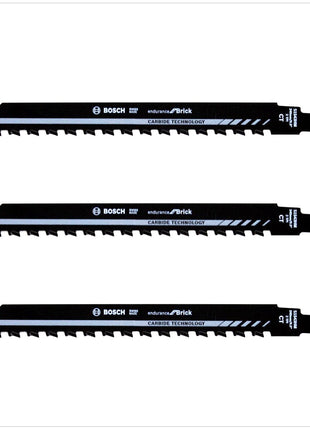 Bosch 3x Säbelsägeblatt S 1543 HM 240mm / 9" zum Sägen in Ziegelstein, Porenbeton, Zementstoffe SET
