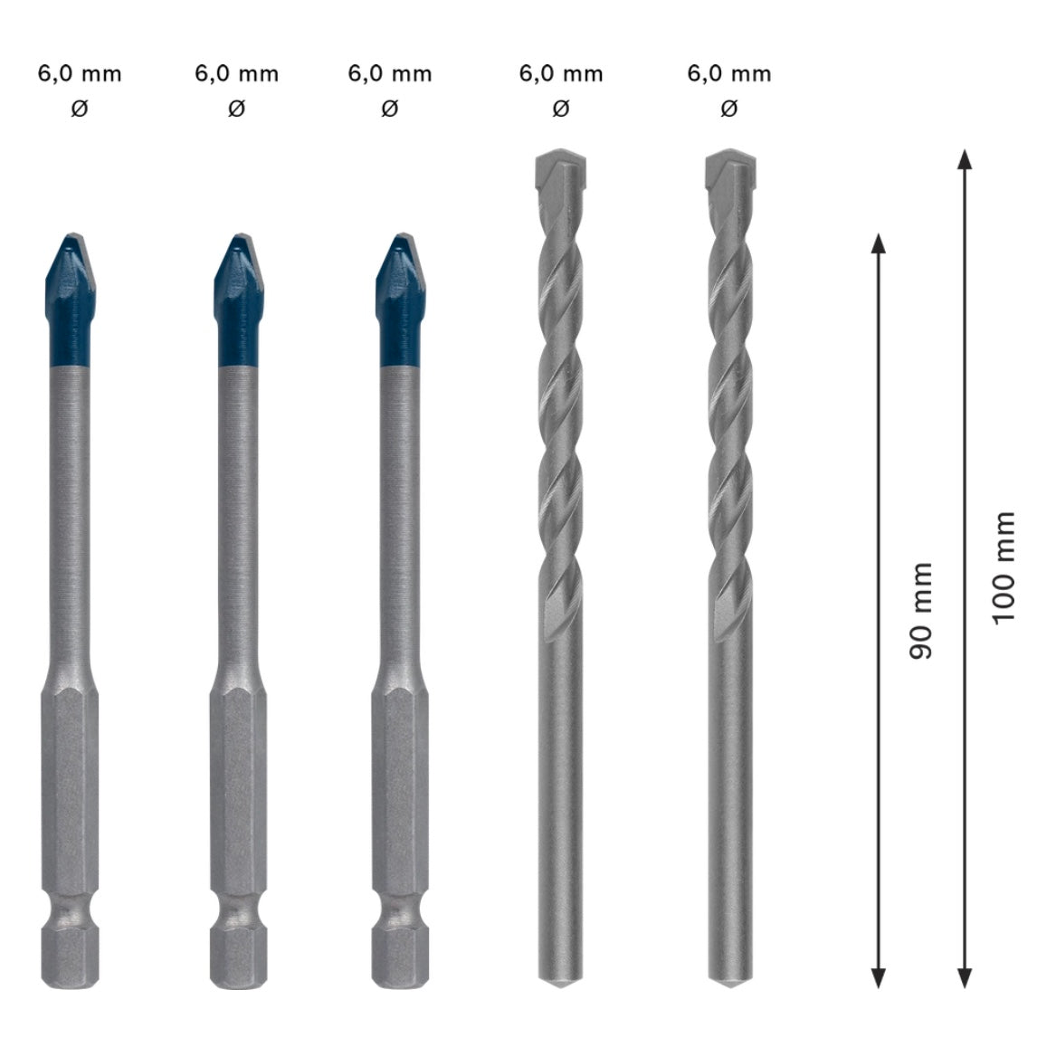 - 5x Bosch EXPERT HEX-9 HardCeramic Bohrer ( 3x 6,0 x 90 mm / 2x 6,0 x 100 mm )