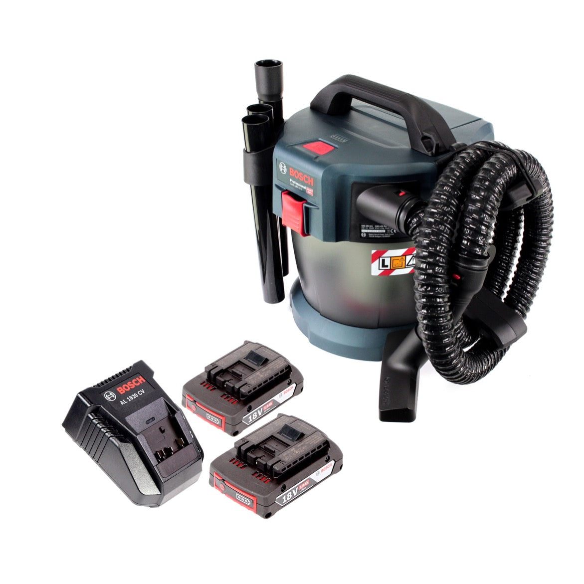 Bosch GAS 18V-10 L Professional Li-Ion Akku Staubsauger Nass- und Trockensauger + 2x GBA 2,0 Ah Akku + AL 1820 CV Ladegerät