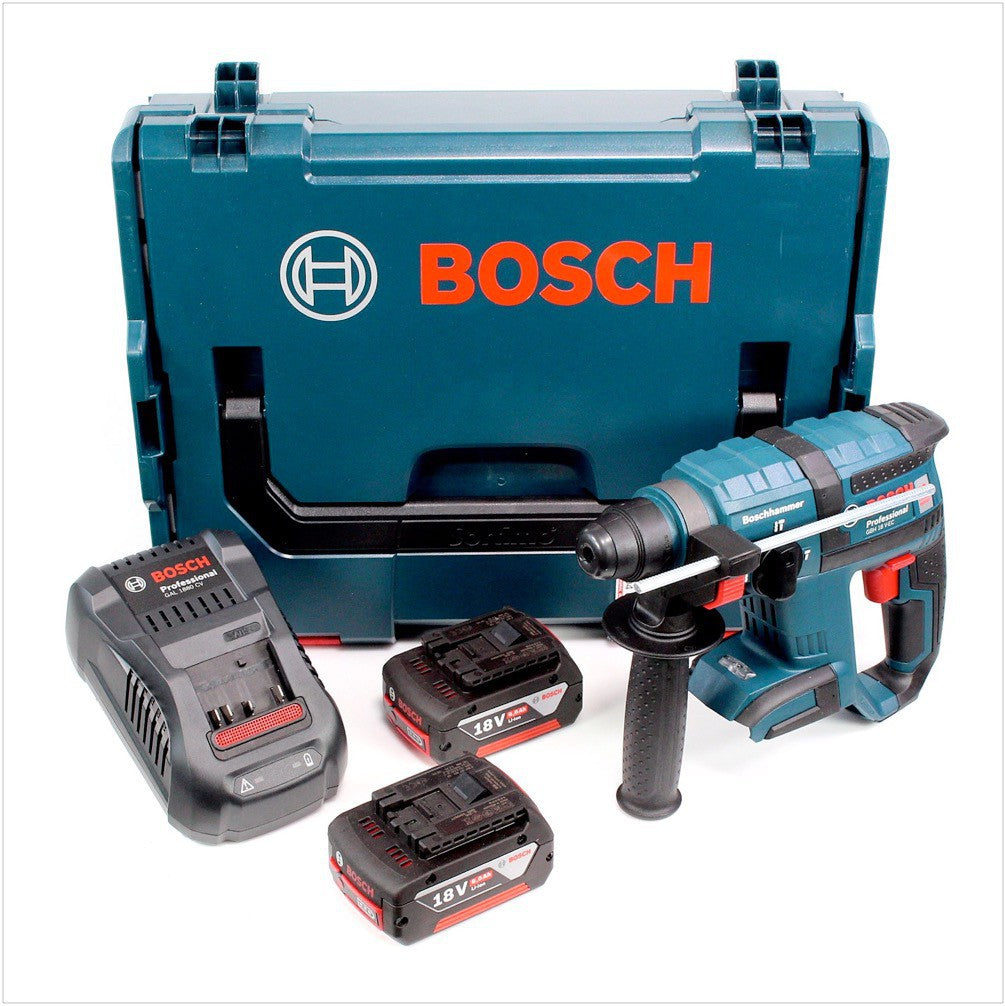 Das Elektrowerkzeug ist bestimmt zum Hammerbohren in Beton, Ziegel und Gestein sowie für leichte Meißelarbeiten. Es ist ebenso geeignet zum Bohren ohne Schlag in Holz, Metall, Keramik und Kunststoff sowie zum Schrauben. Der Akku-Bohrhammer ist mit der Bosch Electronic Cell Protection (ECP) und einem bürstenlosen Bosch-EC-Motor ausgerüstet, was für eine lange Lebensdauer des Bohrhammers sorgt. Außerdem ist der GBH 18 V-EC mit der electronic Motor Protection ausgestattet, welche den Motor vor Überlastung schützt. Dank seiner kompakten Bauweise und seinem niedrigem Gewicht ist ein angenehmes und komfortables Arbeiten garantiert. Für optimale Lichtverhältnisse sorgt eine LED am Bosch GBH 18 V-EC. Der Bosch GBA 5,0 Ah Akku mit 18 Volt besitzt eine nochmal um 25% längere Laufleistung als das 4,0 Ah Modell (von Bosch). Die verbaute CoolPack-Technologie sorgt für eine bis zu 100% längere Lebensdauer im Vergleich zu Akkus ohne CoolPack. Der Akku ist durch das Bosch flexible Power System kompatibel mit allen Geräten der 18 Volt Klasse. Der Akku ist extrem robust verbaut, wodurch selbst ein Fall aus mehreren Metern Höhe auf harten Boden die Funktionsfähigkeit des Akkus nicht beeinträchtigt. Mit dem neuen Schnellladegerät GAL 1880 CV von Bosch sind die Akkus bis zu 50% schneller wieder aufgeladen als mit dem Vorgängermodell AL 1860 CV. Das Ladegerät arbeitet mit innovativer Active Air Cooling Technologie, welche die Lebensdauer der Akkus maximiert.