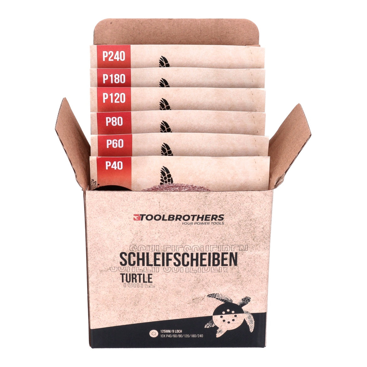 Bosch GEX 12V-125 Profesjonalna akumulatorowa szlifierka oscylacyjna bezszczotkowa 12 V 125 mm + 2x akumulator 3,0 Ah + ładowarka + zestaw szlifierski Toolbrothers TURTLE + L-Boxx