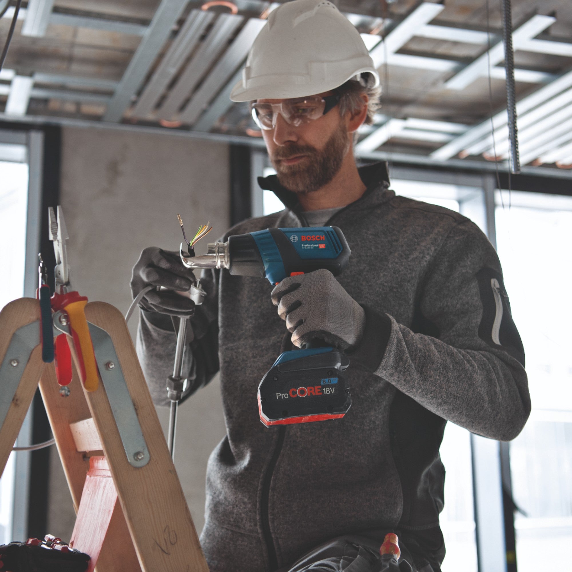 Dzięki GHG 18V-50 Professional, Bosch Professional oferuje bezprzewodową dmuchawę gorącego powietrza do elastycznego zastosowania w każdym środowisku. Dzięki szybkiemu nagrzewaniu do temperatury 300°C w ciągu 6 sekund, urządzenie jest gotowe do pracy w bardzo krótkim czasie. Dzięki akumulatorowi dmuchawa gorącego powietrza oferuje wyjątkową elastyczność i może być używana również bez podłączenia do zasilania. Oświetlenie LED zapewnia optymalną widoczność obrabianego elementu przez cały czas. Akumulatorową dmuchawę gorącego powietrza GHG 18V-50 można łączyć ze wszystkimi dyszami dostępnymi dla przewodowych dmuchaw gorącego powietrza oraz wszystkimi akumulatorami i ładowarkami Bosch Professional 18 V. Bosch Professional to wiodący producent elektronarzędzi wszelkiego rodzaju, charakteryzujący się przede wszystkim wieloletnią tradycją i wysoką jakością wykonania.