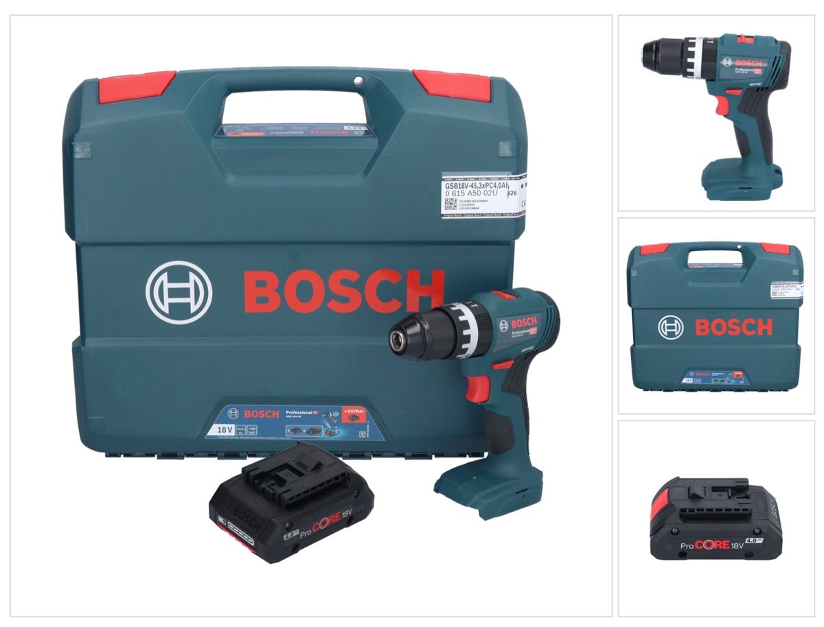 Bosch GSB 18V-45 Profesjonalna akumulatorowa wiertarko-wkrętarka udarowa 18 V 45 Nm bezszczotkowa + 1x akumulator ProCORE 4,0 Ah + walizka L - bez ładowarki