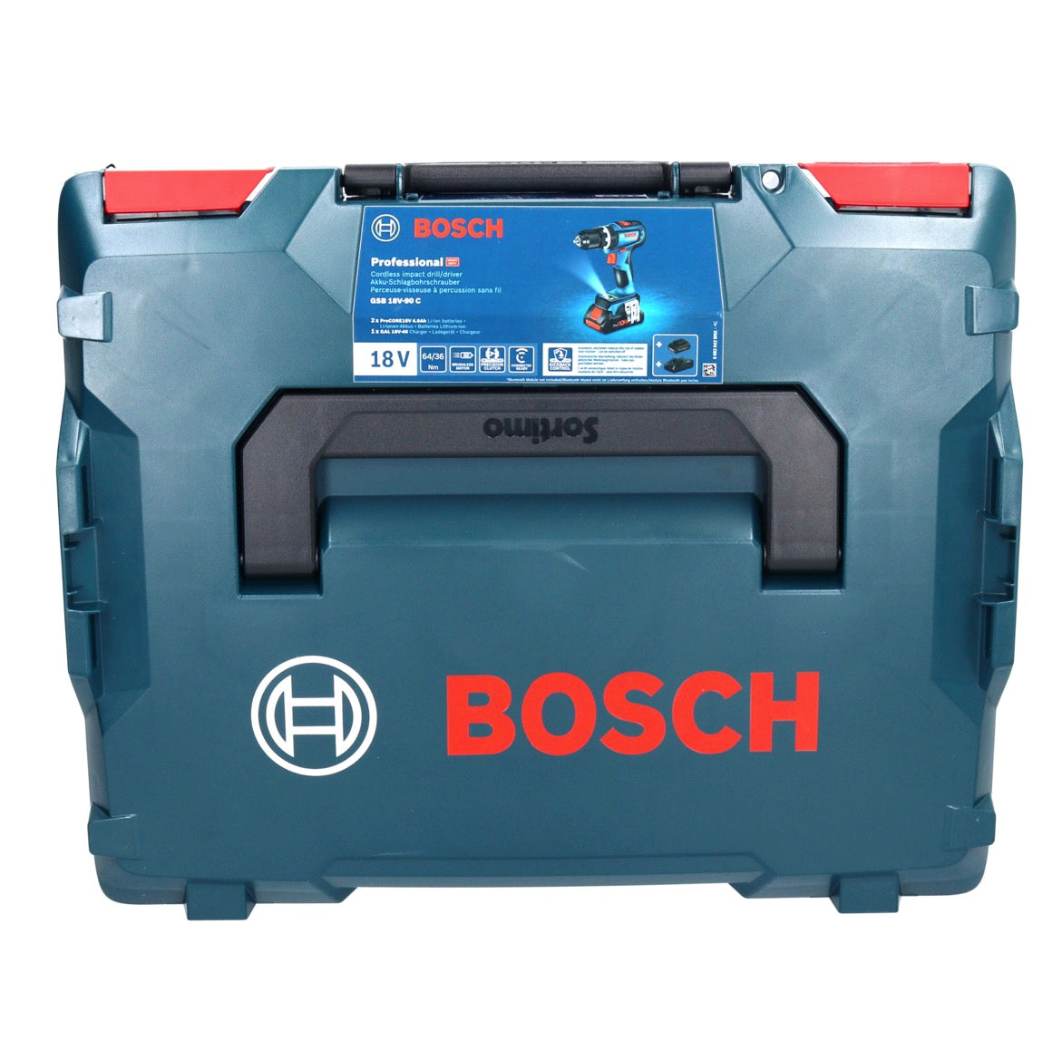 Bosch GSB 18V-90 C Profesjonalna akumulatorowa wiertarko-wkrętarka udarowa 18 V 64 Nm bezszczotkowa + 2x akumulator ProCORE 4,0 Ah + ładowarka + L-Boxx