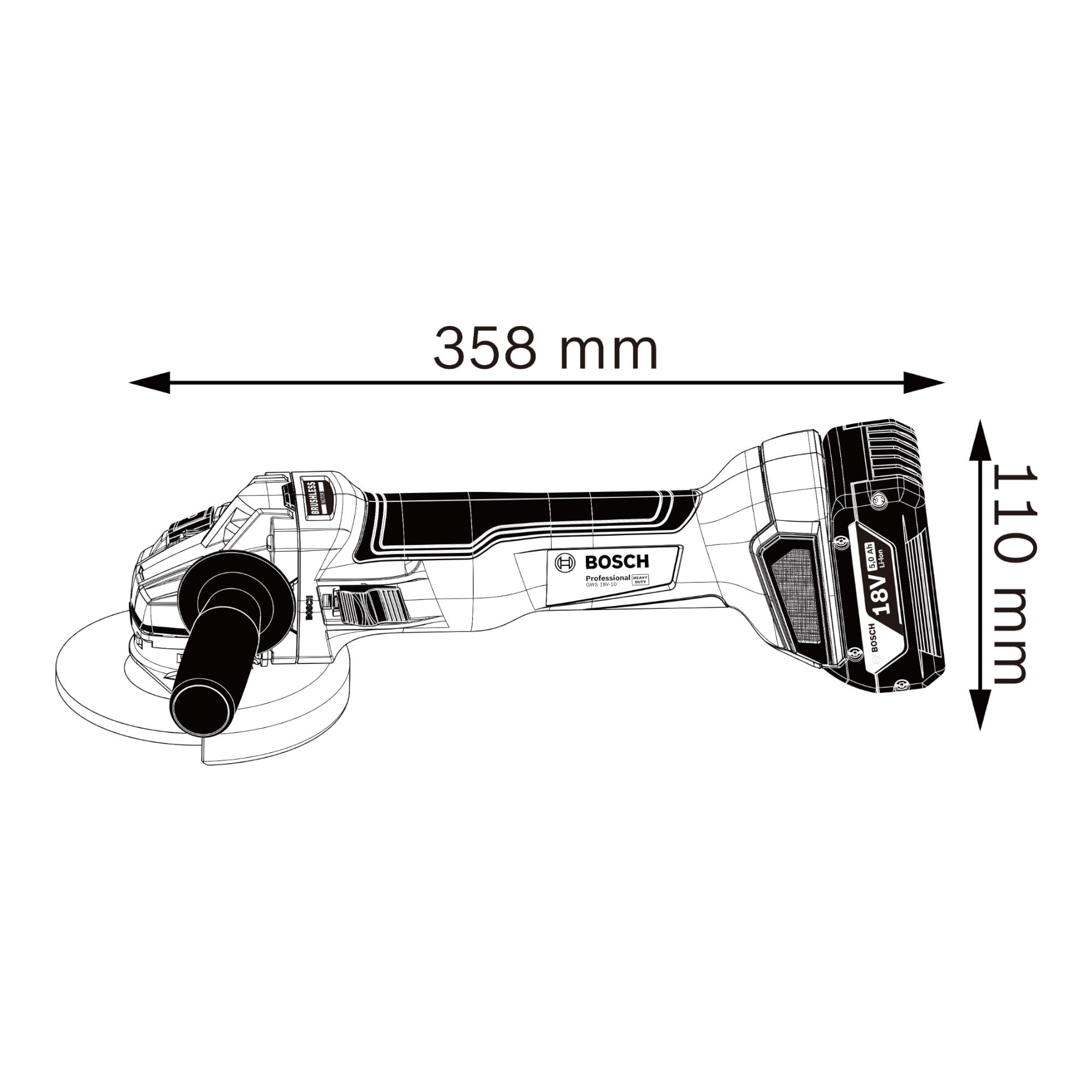 Akumulatorowa szlifierka kątowa Bosch GWS 18V-10 Professional to wydajne narzędzie do zastosowań profesjonalnych. Dzięki bezszczotkowemu silnikowi i akumulatorowi ProCORE18V oferuje taką samą wydajność jak szlifierka przewodowa o mocy 1000 W. Dzięki funkcjom takim jak Drop Control, KickBack Control i Intelligent Brake System, szlifierka kątowa zapewnia większą ochronę i komfort użytkownika. Funkcja Drop Control jest pierwszą tego typu funkcją na świecie i umożliwia natychmiastowe wyłączenie narzędzia w razie przypadkowego upadku na ziemię. GWS 18V-10 Professional jest kompatybilny ze wszystkimi akumulatorami i ładowarkami Bosch Professional 18V, a także może być używany z AMPShare, sojuszem akumulatorowym między markami. Dzięki temu szlifierka kątowa może być elastycznie używana z innymi narzędziami. Kolejną praktyczną cechą jest nakrętka szybkomocująca, która sprawia, że wymiana narzędzia szlifierskiego jest szybka i łatwa.