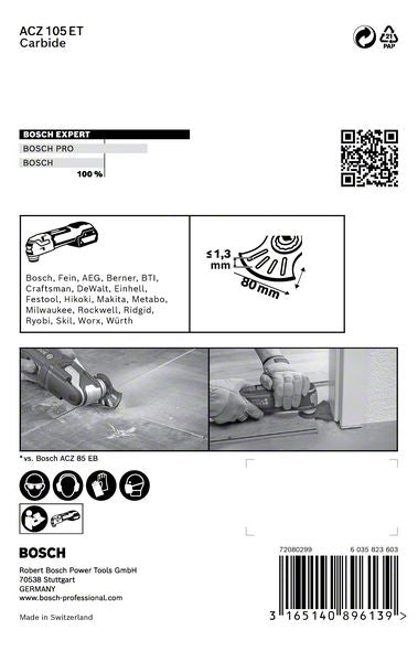 - 1x Brzeszczot segmentowy Bosch EXPERT Multi Material ACZ 105 ET Starlock 105 mm