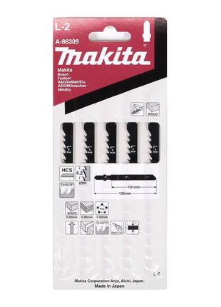 Brzeszczoty Makita L-2 do drewna - 5 sztuk do wyrzynarek z uchwytem w kształcie litery T ( A-86309 )