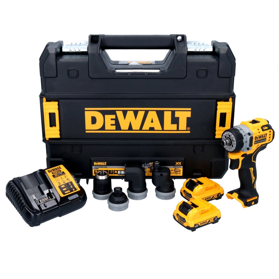 DeWalt DCD 703 L2T Akku Bohrschrauber 12 V 57,5 Nm Brushless + 2x Akku 3,0 Ah + Ladegerät + 4x Bohrfutteraufsatz + TSTAK