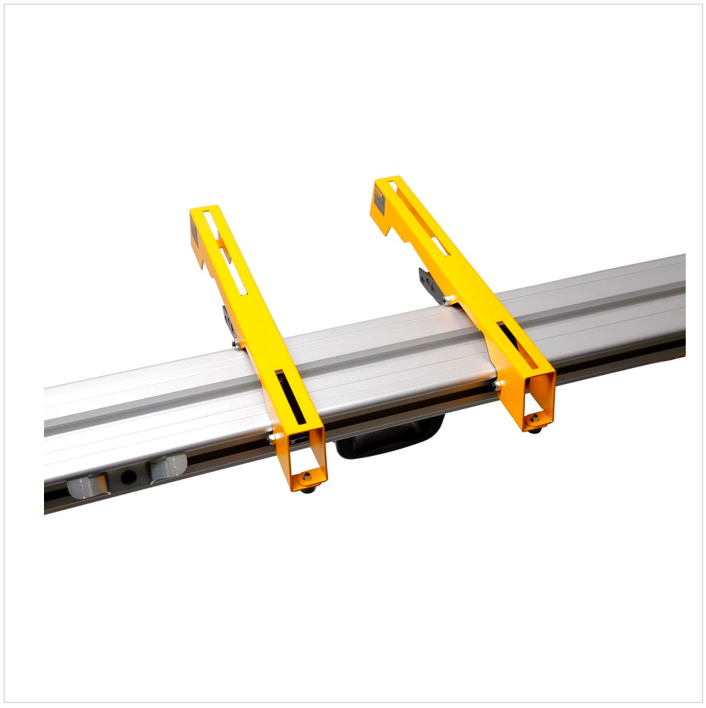 Das DeWalt DE 7033 Universal Untergestell eignet sich besten für alle Kapp-, Gehrungs- sowie Paneelsägen der Firma DeWalt und anderen namenhaften Herstellern von Elektrowerkzeug. Ein verbauter Tragegriff erleichtern den Transport bei Montageeinsätzen. Die sehr robuste Aluminium Konstruktion sorgt gleichzeitig für ein geringes Gewicht von nur 14,8 kg. Das Untergestell verfügt zudem über ausfahrbare Werkstückauflagen, somit lässt sich das Gestell auf eine maximale Arbeitslänge von 262 cm verlängern.