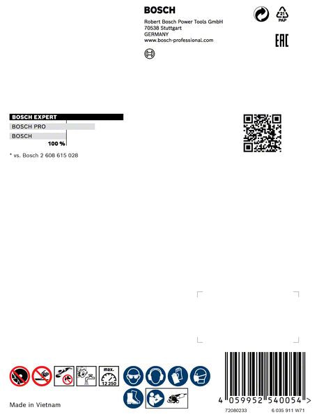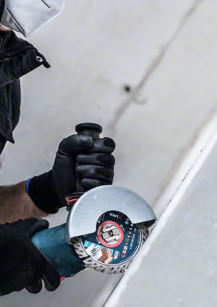 Dzięki technologii diamentowej Bosch diamentowa tarcza tnąca Bosch EXPERT Multi Material zapewnia bardzo trwałą krawędź tnącą do cięcia różnych materiałów budowlanych. Tarcie na bocznych powierzchniach segmentów o wysokości 12 mm zostało zmniejszone, aby zminimalizować zużycie boków. Segmenty są spawane laserowo, aby zapewnić mocne połączenie ze stalową tarczą. Dzięki systemowi szybkiej wymiany X-LOCK tarczę montuje się na szlifierce kątowej jednym kliknięciem. Największą zaletą systemu X-LOCK jest to, że nadal można go montować i używać na wszystkich standardowych szlifierkach kątowych z nakrętką mocującą. Wszystko to oznacza, że wielomateriałowa diamentowa tarcza tnąca EXPERT wytrzymuje do 4 razy dłużej niż standardowa wielomateriałowa diamentowa tarcza tnąca. Linia Bosch EXPERT to najbardziej innowacyjne akcesoria do elektronarzędzi o udowodnionych zaletach, które umożliwiają każdemu profesjonalnemu rzemieślnikowi pracę z maksymalną wydajnością. Niezwykle długa żywotność, maksymalna precyzja, praca na najwyższych obrotach i bezpyłowe szlifowanie: wszystko to jest możliwe dzięki Bosch EXPERT.