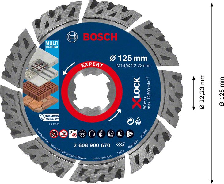 - 1x Diamentowa tarcza tnąca Bosch EXPERT Multi Material 125 x 22,23 x 2,4 mm X-LOCK