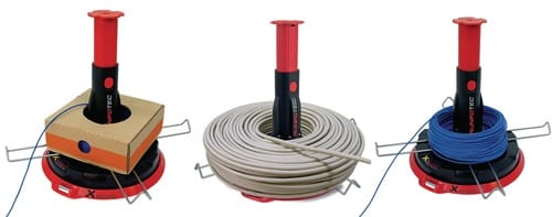 uniwersalna profesjonalna nawijarka i odwijarka do wszystkich małych i średnich bębnów kablowych + wielofunkcyjny trzpień w walizce - mała, lekka i płaska konstrukcja - szczególnie nadaje się do uszkodzonych bębnów kablowych - umożliwia bezproblemową i wydajną pracę bez splątanych kabli - 6 gumowanych nóżek zapewnia antypoślizgową i bezpieczną podstawę - luźne wiązki kabli można również łatwo odwijać za pomocą wielofunkcyjnego trzpienia