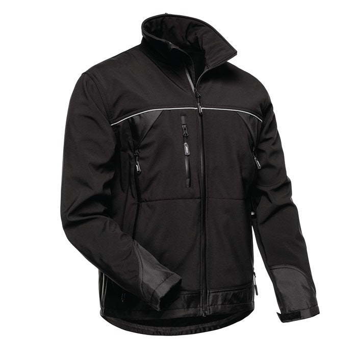 Materiał zewnętrzny: 96% poliester, 4% elastan, 3-warstwowy laminat (softshell) - wstawka u dołu i u dołu rękawów: 100% poliester, Oxford - materiał softshell jest wiatroszczelny, wodoodporny i oddychający - wszystkie zamki błyskawiczne wodoodporne - słup wody: 8000 mm - oddychalność: 1000 g/m²/24h - wysoce odporny na ścieranie i wytrzymały materiał softshell - wygoda noszenia dzięki polarowemu materiałowi wewnątrz kurtki - odblaskowe lamówki z przodu - regulowany dół i dół rękawów - zamek błyskawiczny z osłoną podbródka - dopracowane wykończenie wnętrza - regulowane zakończenie kołnierza