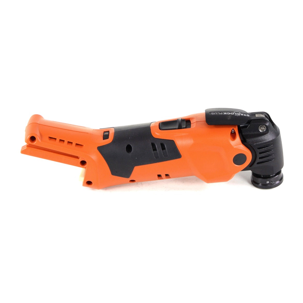 Der handgeführte Oszillierer eignet sich zum Schleifen kleiner Flächen, Ecken und Kanten, zum Sägen von dünnen Blechen, Holz- und Kunststoffteilen, zum Schaben, Polieren, Raspeln, Schneiden und Trennen mit den von FEIN zugelassenen Einsatzwerkzeugen und Zubehör. Der MultiMaster AFMM 18 QSL in der Akku-Variante ist der leistungsstarke Helfer für viele Anwendungen. Ohne Beschränkung durch ein Stromkabel werden Renovierungen, Reparaturen und Aufarbeitungsarbeiten effektiv und schnell erledigt. Die Starlock Plus Aufnahme mit QuickIn-Schnellspannsystem ermöglicht einen schnellen und einhändigen Werkzeugwechsel und direkte Kraftübertragung. Angetrieben wird das Gerät durch einen Motor, der die gleiche Leistung bietet wie bei der netzbetriebenen Variante. Er ist selbsttragend in dem Gerät montiert für eine hervorragende Geräusch- und Vibrationsreduzierung. Die Drehzahl/ Schwingzahl ist stufenlos einstellbar, um ein optimales Arbeitsergebnis zu erreichen. Die Griffläche ist mit einer rutschfesten Softgrip-Beschichtung verkleidet.
