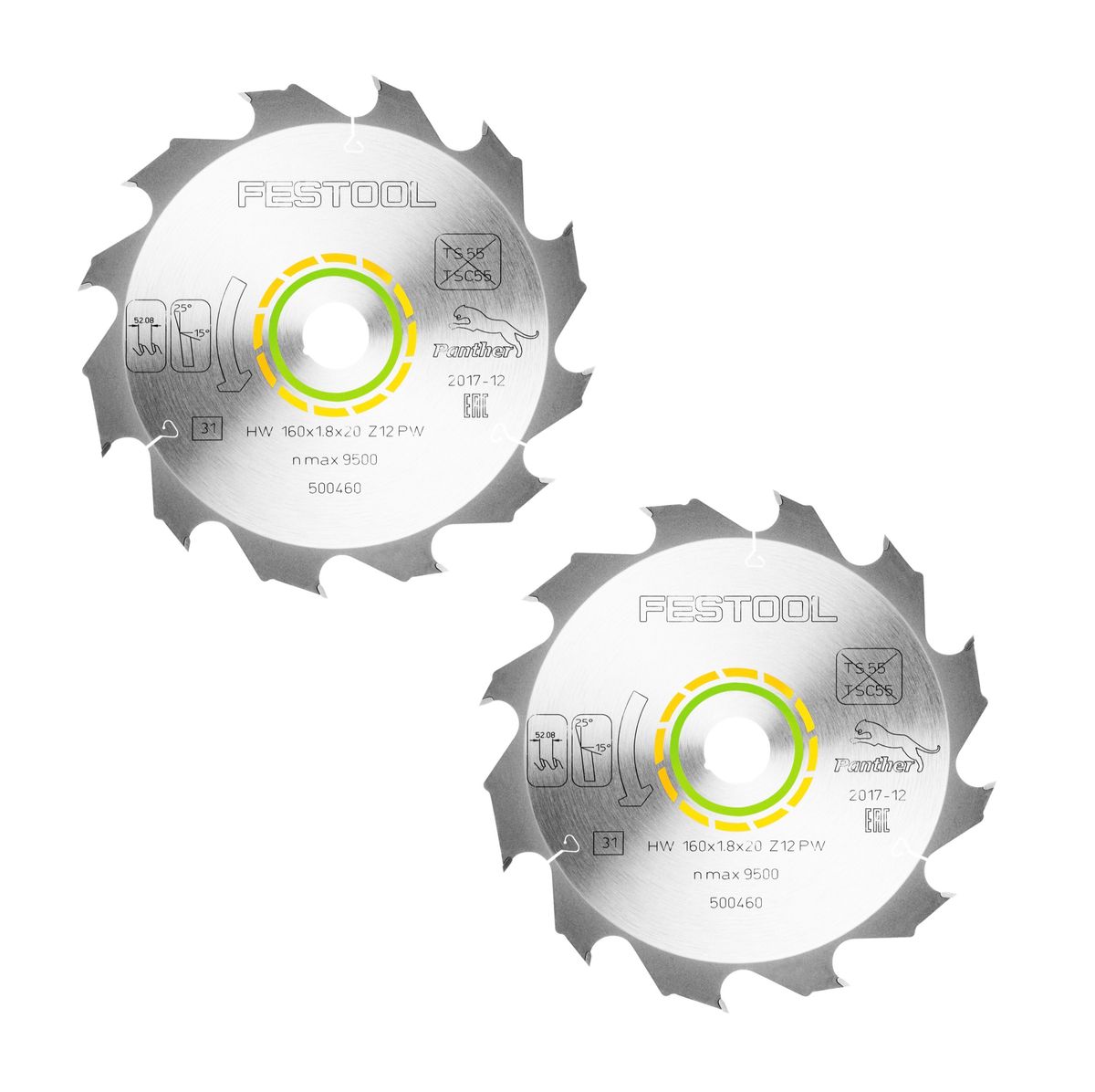 Festool 2x Piła tarczowa Panther PW12 drewno 160 x 1,8 x 20 mm 160 mm 12 zębów ( 2x 500460 ) HKC TS