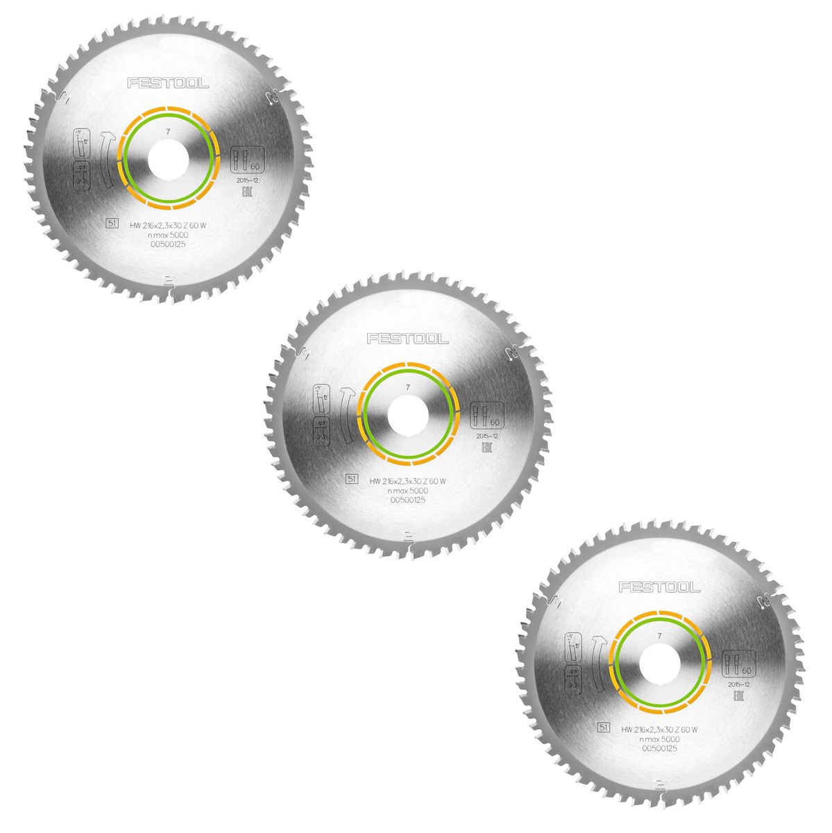 Festool 3x tarcza pilarska z drobnym uzębieniem HW 216 x 2,3 x 30 mm W60 216 mm 60 zębów ( 3x 500125 )